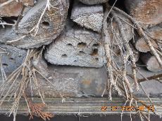 Unzählige Bienen waren dabei , Blütenstaub und Eier zu legen , doch eine unbekannte Insektenart hinderte sie daran . Diese töteteten viele und ich konnte nichts tun dagegen . Wenn ich nur wüßte was das für eine Insektenart ist . Schwarze Wespen ?? Gibt es nicht , aber warum haben diese die Wildbienen daran gehindert Ihre Existens der nachfolgenden Brut aufzubauen ? Ich weiß es nicht , aber ich werde mal googlen im Netz .