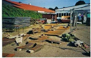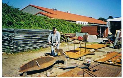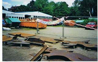 Diese Stahlbleche können nur mit einem 3 Tonnen Gabelstapler abgeladen werden und dieser passt überhaupt nicht durch die Garageneinfahrt.Außerdem können diese Stahlbleche überhaupt nicht bearbeitet werden ,weil es zum Schweißbrennen und aufstellen dieser Figuren kein Platz vorhanden wäre. Die dementsprechenden Sicherheitsvorschriften könnten auch nicht eingehalten werden.