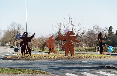 Es gab eine Ausschreibung der Schulen - Klasse 8 bis 10 - einen neu gebauten Kreisverkehr, in Sodingen,Stadt Herne die Mitte des Kreisverkehrs zu verschönern.Es war ein Wettbewerb und der beste Vorschlag wird Prämiert.Es wurden von einer Schule Figuren gezeichnet und der Vorschlag wurde eingereicht mit dem Erfolg des ersten Platzes der gesammten Vorschläge.